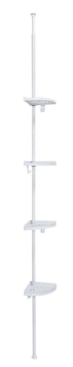 diaqua® Etagère salle de bain blanc 180 - 260 CM - Télescopique, à serrer entre le sol et le plafond, avec 4 tablettes, blanc.