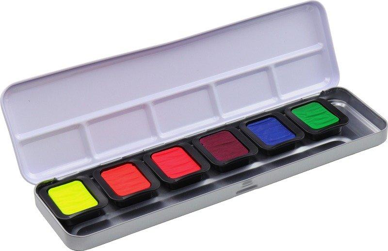 FINETEC - Premium Box Neon Perlglanzfarben mit neuem Effekt auch für die 3. Dimension, geeignet für Kalligraphie, Mallerei und Grafik. Die deckenden Perlglanzfarben entfalten auf allen Untergründen ihre volle Farbbrillanz und ihren einzigigartigen Farbglanz. Neon-Farbe mit Tagesleucht-Pigmenten. Nur für helle Untergründe. Wasserlösliche Künstlerfarbe auf Basis von gereinigtem Gummi Arabicum und modernen Perlglanz- bzw. Effektpigmenten höchster Qulität. Geeignet zur Anwendung mit Pinsel und auch mit Feder. Die Farben lassen sich sowohl untereinander als auch mit anderen Medeen mischen und haften auf unterschiedlichen saugenden Untergründen. Hohe Lichtechtheit / Hohe Pigmentierung / Hervorragende Anlösbarkeit / Toxikologisch unbedenklich / Vegan Hochwertige Metallbox mit 6 Neon-Farben