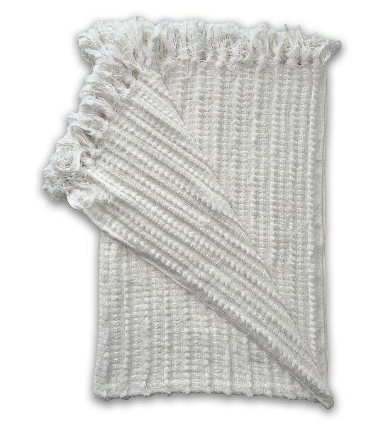 Cette couverture moelleuse présente un motif linéaire et des franges qui complètent le style individuel. C'est une couverture légère de printemps et d'été – confortable et pourtant très respirante – pour une chaleur et un confort merveilleusement légers sans alourdir. Qualité de maille légère et duveteuse avec franges.
