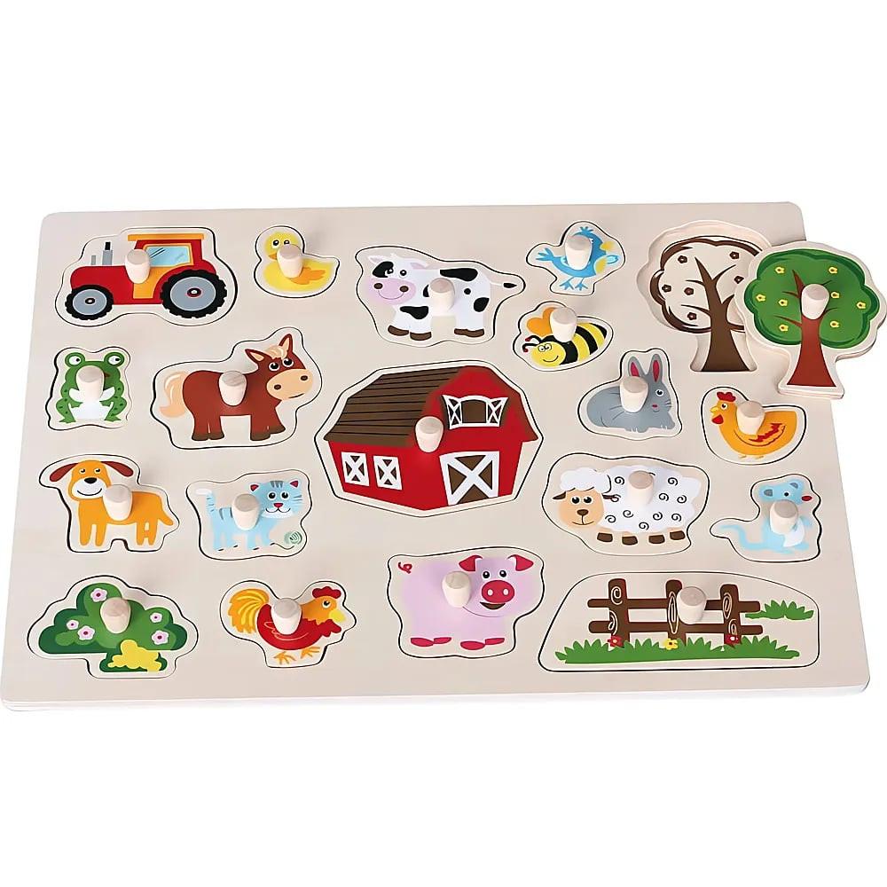 Entdecken Sie das Tiere Gross Puzzle mit Griffli, ein ideales Spielzeug für Kleinkinder. Dieses pädagogisch wertvolle Puzzle besteht aus 19 Teilen und ist speziell für Kinder ab 2 Jahren konzipiert. Jedes Teil verfügt über einen praktischen Griff, der das Heben und Positionieren erleichtert. Die Mottivi aus dem Bauernhofleben helfen Ihrem Kind, Formen und Farben spielerisch zu lernen und fördern gleichzeitig die Motorik und Hand-Augen-Koordination.