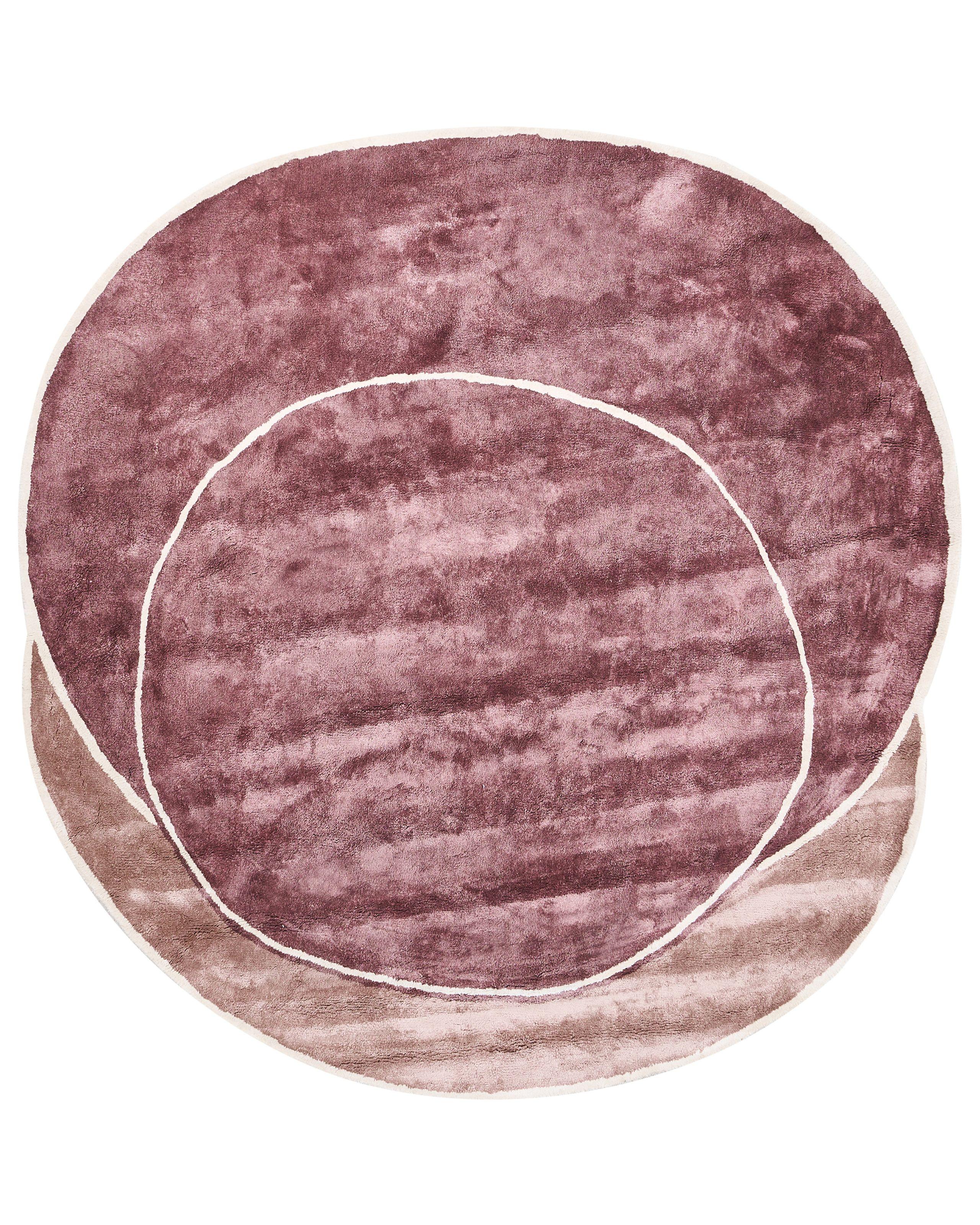 Tapis rond en viscose et laine. Ornez votre intérieur avec ce tapis fabriqué à la main, une décoration indispensable pour tout intérieur moderne. Il attire l'attention grâce à sa combinaison de couleurs unique, mélangeant des tons de rose, avec un bord beige plus clair - ainsi qu'à sa forme irrégulière. Le tapis est très doux et agréable au toucher, ce qui en fait une pièce maîtresse parfaite pour votre espace de vie.