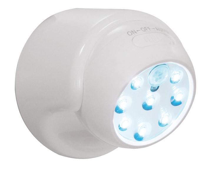 Caractéristiques techniques : Auto : ne fonctionne que dans la pénombre (lumière crépusculaire). Fonctionne : avec 3 piles de type AAA, non incluses. Nombre de lampes : 8 Angle d'inclinaison réglable : oui (360 degrés) Détecteur de mouvement : oui Type de protection : IP 44 Taille : H10.2, W10.2, D10.2cm Distance de détection : jusqu'à 3m Puissance lumineuse : 1 watt Flux lumineux nominal : 53 lumens Température de couleur : 6500K poids : 130g couleur : blanc