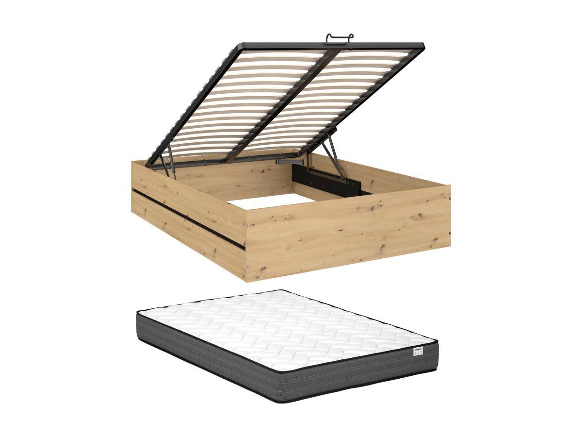 Vente-unique Lit coffre 140 x 190 cm - Coloris : Naturel et noir + Matelas - LUDARO