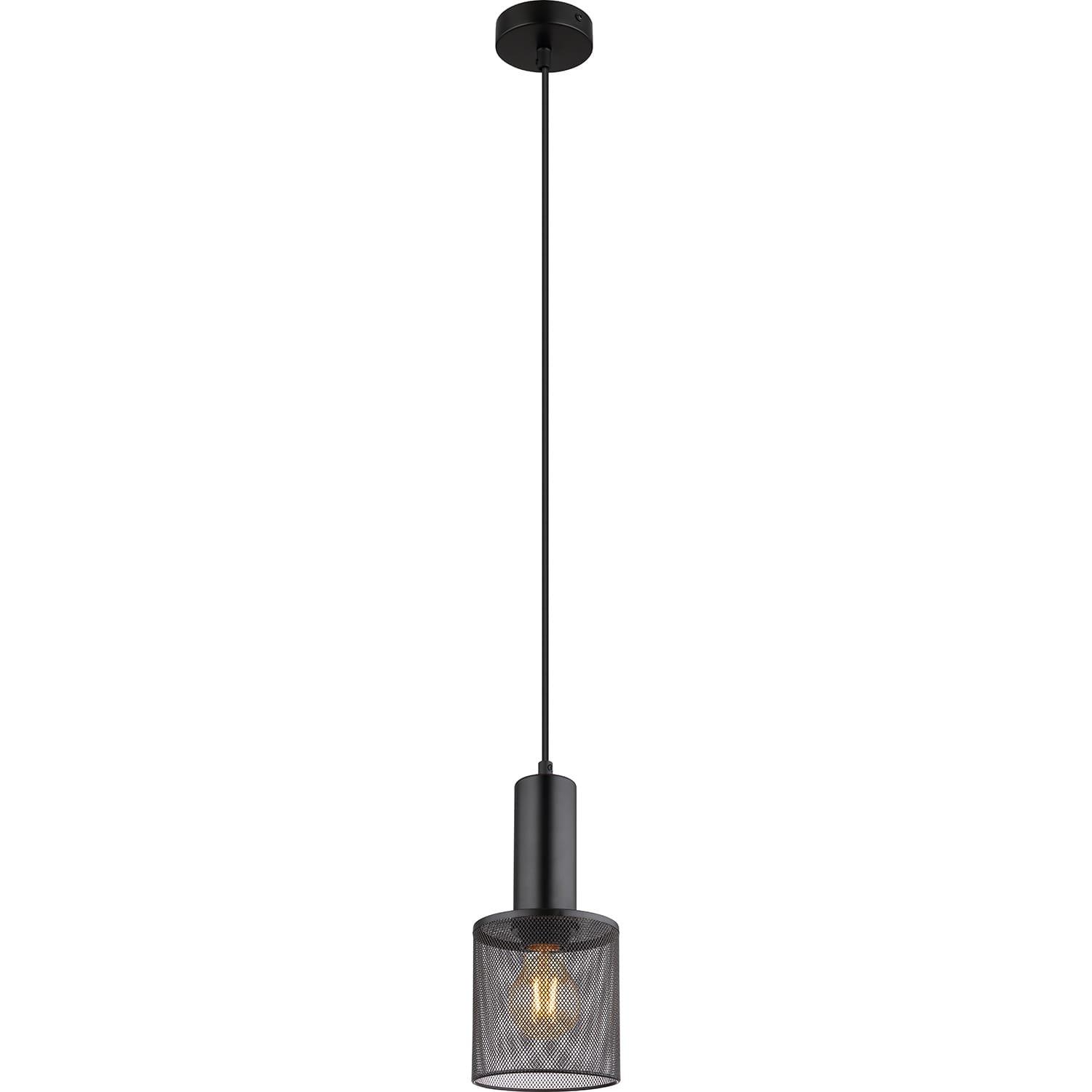 Suspension en métal noir mat, treillis métallique noir mat, câble PVC noir, : 120mm, H: 1200mm, exclu 1x E27 60W 230V.