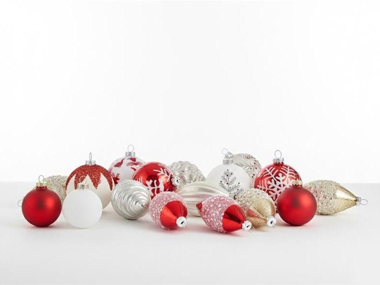 Collection de 50 décorations de Noël faites à la main. Rassemblez-vous autour du sapin de Noël et décorez-le avec cette magnifique collection de 50 boules de Noël en verre faites à la main. Avec leur charmant mélange de formes rondes et de pommes de pin, chaque décoration combine des nuances élégantes de rouge et de blanc pour un look festif vraiment classique. Des accents scintillants captent magnifiquement la lumière, créant une esthétique enchanteresse digne d'un conte de fées hivernal.