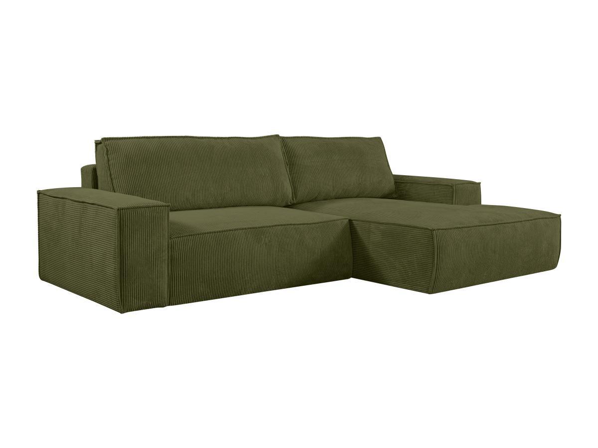 Vente-unique, Canapé d'angle droit convertible en velours côtelé vert olive AMELIA