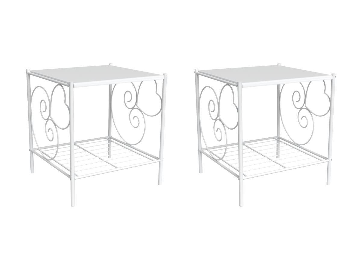 Vente-unique Lot de 2 tables de chevet romantique - 1 tablette - Métal - Blanc - VIVIAN