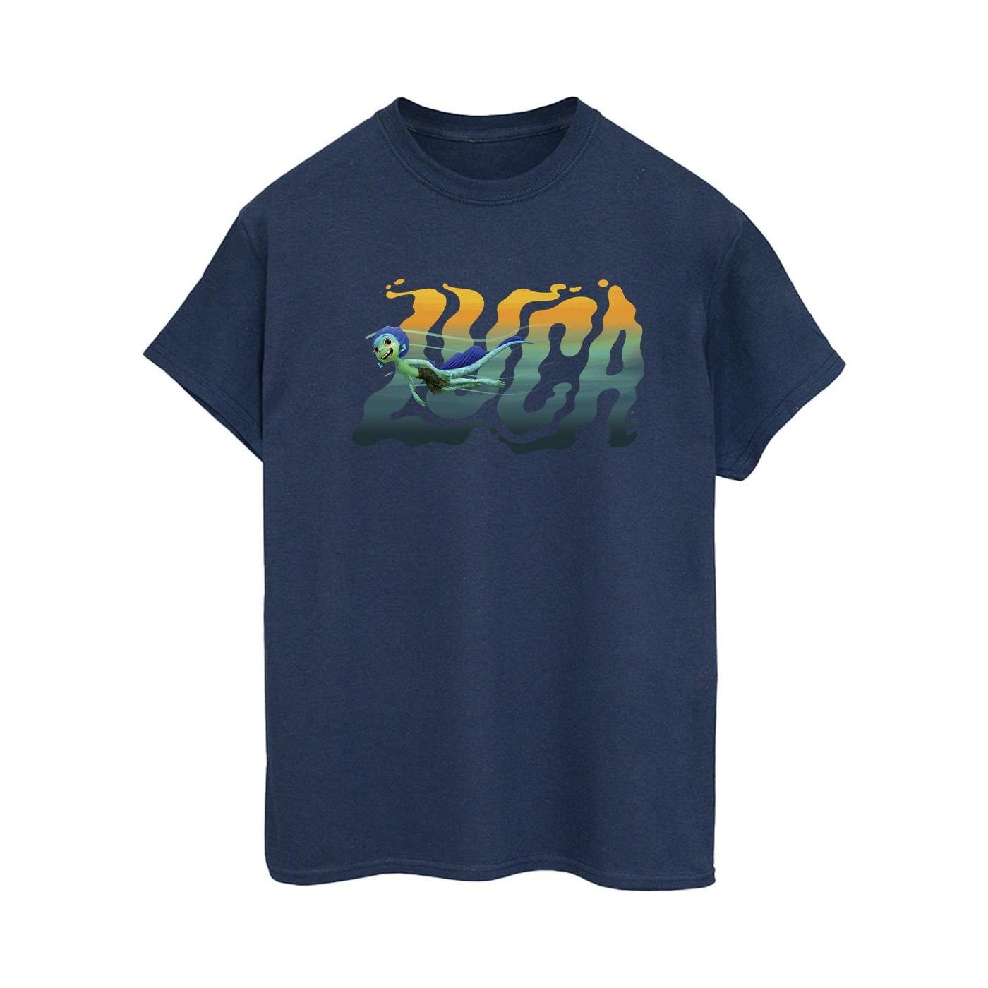 Ce T-shirt présente un imprimé graphique vibrant inspiré du film d'animation Luca. Le design met en scène Luca sous sa forme de monstre marin, nageant gracieusement avec le titre du film stylisé dans une police ondulée. Le haut à manches courtes offre une coupe confortable, le rendant adapté à un usage quotidien.