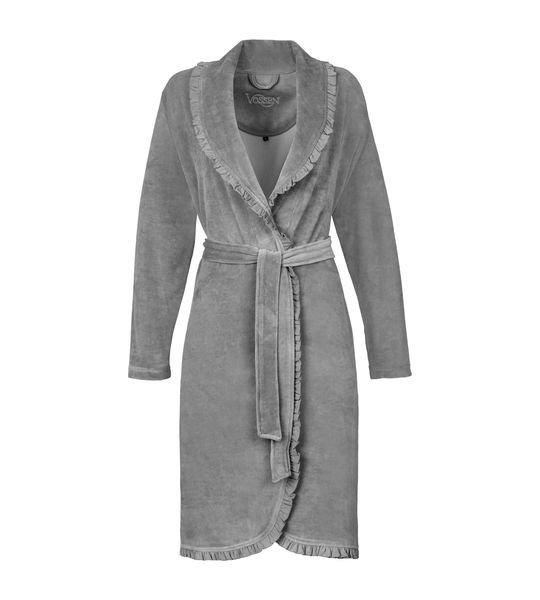 Le peignoir Ariel offre une expérience luxueuse et confortable. Cet élégant peignoir est doté d'un col châle avec de délicates volants, ajoutant une touche de sophistication à son design. Une ceinture à nouer assortie permet un ajustement réglable et sécurisé, assurant confort et style.