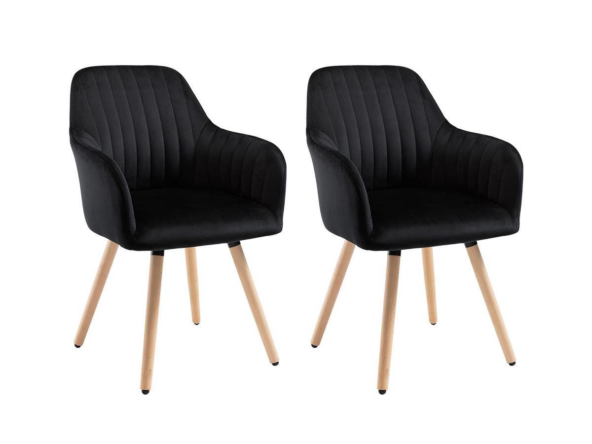 Vente-unique, Lot de 2 chaises avec accoudoirs ELEANA Velours Métal Effet Bois