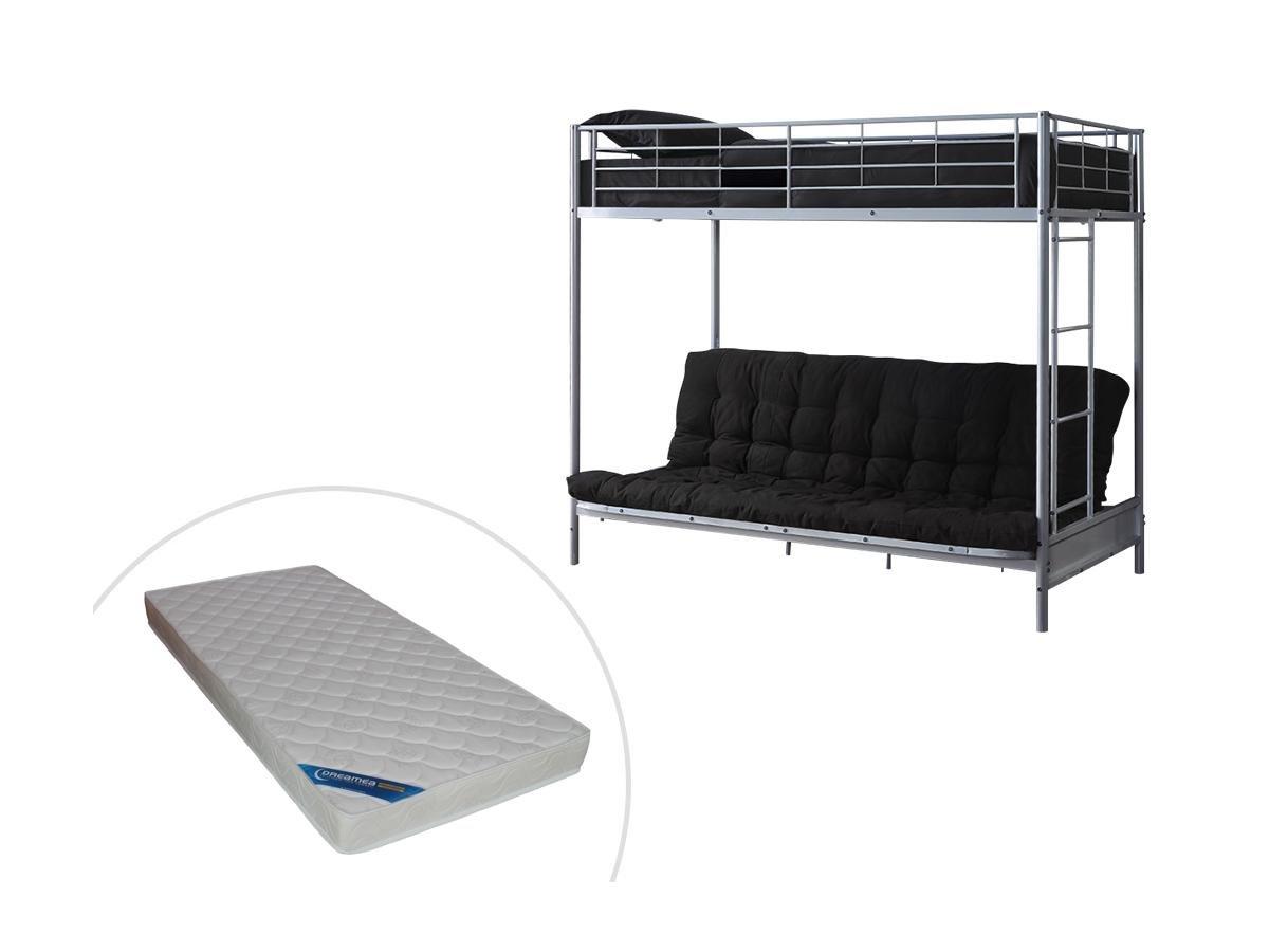 Vente-unique, Lit mezzanine 90 x 190 cm - Avec banquette convertible - Métal - Argent + Futon + Matelas - MODULO V