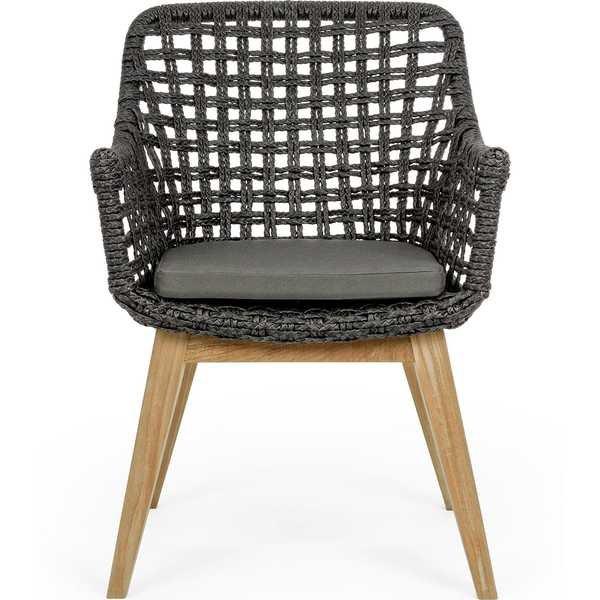 Siège avec cadre en aluminium avec revêtement en poudre (polyester). Tressage en fibre synthétique Viro avec une structure de tressage originale (effet cuir). Coussins d'assise déhoussables en oléfine solaire (100% polypropylène). Pieds en teck - svlk (bois certifié issu d'une sylviculture durable). Les pieds nécessitent un assemblage. Vis en acier galvanisé à chaud.