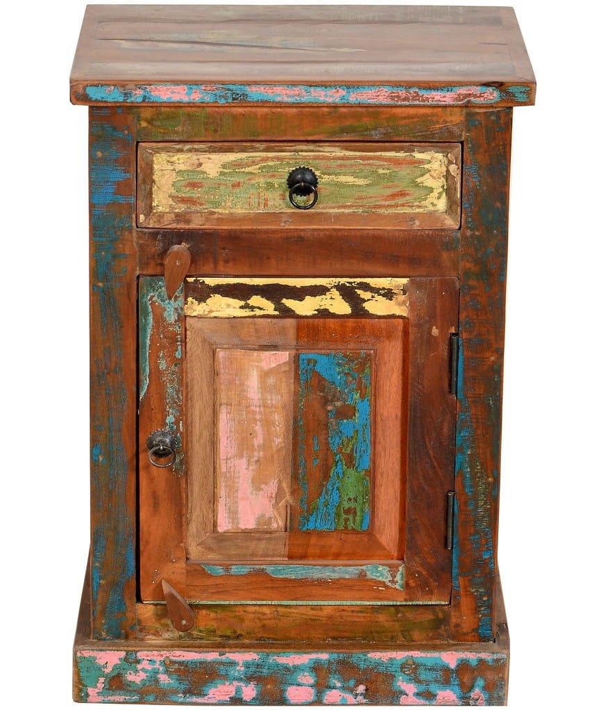 Vintage Colored Agra ? c'est sur cette île de rêve dans la chaleur tropicale de l'océan Indien que nous avons vu pour la première fois des meubles fabriqués à partir de vieux bateaux de pêche. Et avec près de 4 millions d'habitants sur une île, il y a beaucoup de bateaux de pêche ? Ceux-ci sont traditionnellement peints dans les couleurs les plus diverses, des couleurs que l'on retrouve toujours à Bali : des arbres à fleurs tropicaux multicolores comme les frangipaniers, les bougainvilliers ou les hibiscus, des tons de vert comme dans les rizières en terrasses d'Ubud, du bleu comme le ciel, mais aussi du noir comme la lave refroidie des volcans présents en abondance. Toutes ces couleurs se retrouvent dans les meubles de cette série. Grâce à un "œil" habile, le bois est "posé" de telle sorte qu'il forme à nouveau une image harmonieuse. La combinaison de traces d'utilisation prononcées et de métal "vieilli" donne un "design d'usine" d'un genre particulier.