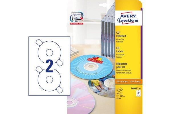 Avery-Zweckform AVERY ZWECKFORM CD-Etiketten Classic weiss L6043-25 117mm 50 Stk.