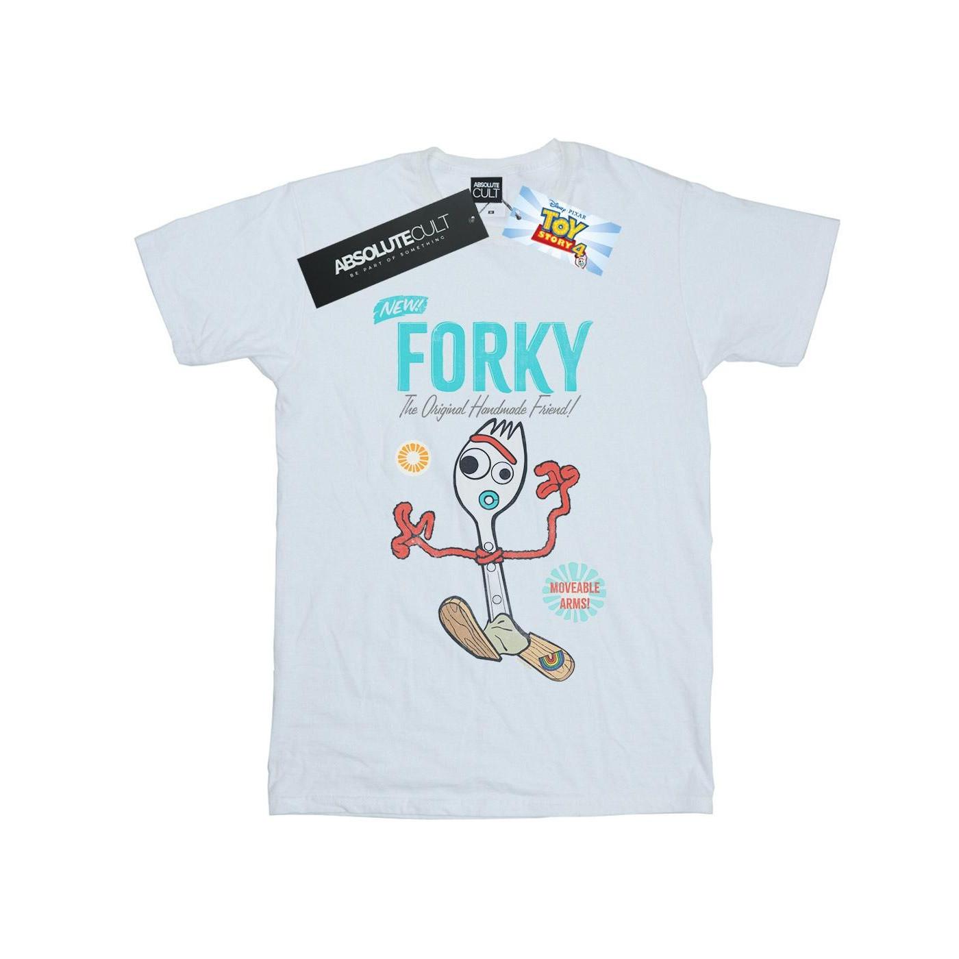 Ce T-shirt présente un design ludique inspiré de Toy Story 4, mettant en vedette le personnage adoré Forky. Le graphique inclut le texte « NEW! FORKY The Original Handmade Friend! » et met en évidence les « MOVEABLE ARMS! » de Forky pour une touche interactive. Ce T-shirt est un ajout amusant à la garde-robe de tout fan.