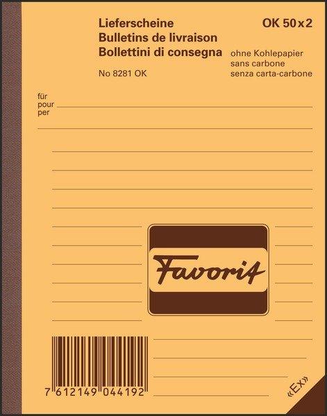 Lieferscheine OK 3-sprachig D/F/I Der Lieferschein von FAVORIT ist das passende Formular, um Lieferungen schnell und exakt zu dokumentieren. Selbstdurchschreibend Ohne Kohlepapier