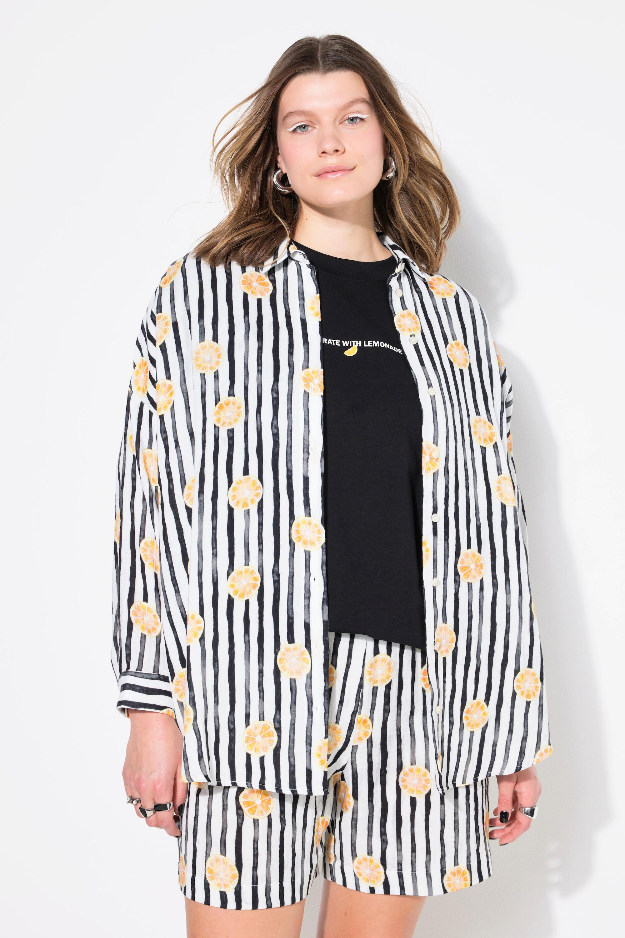 Studio Untold Mousseline Rayée Oversize Imprimé Fruits Blouse