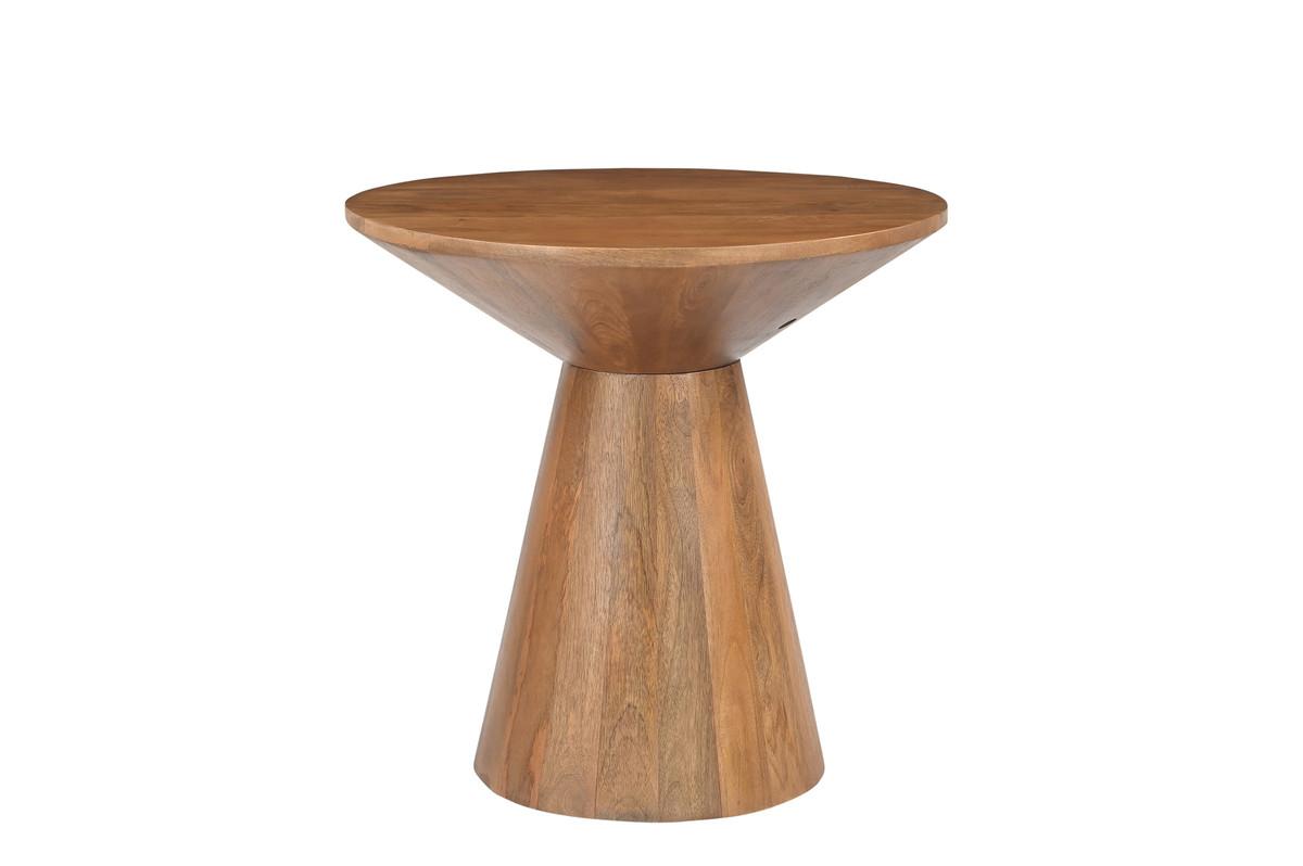 Matériau : bois de manguier robuste et massif Diamètre du plateau de table rond : env. 60 cm Hauteur : 60 cm Veinure du bois unique, chaque table est une pièce unique Surface facile à entretenir et à nettoyer Base stable et équilibrée de forme ronde Utilisation flexible dans différents styles d'aménagement
