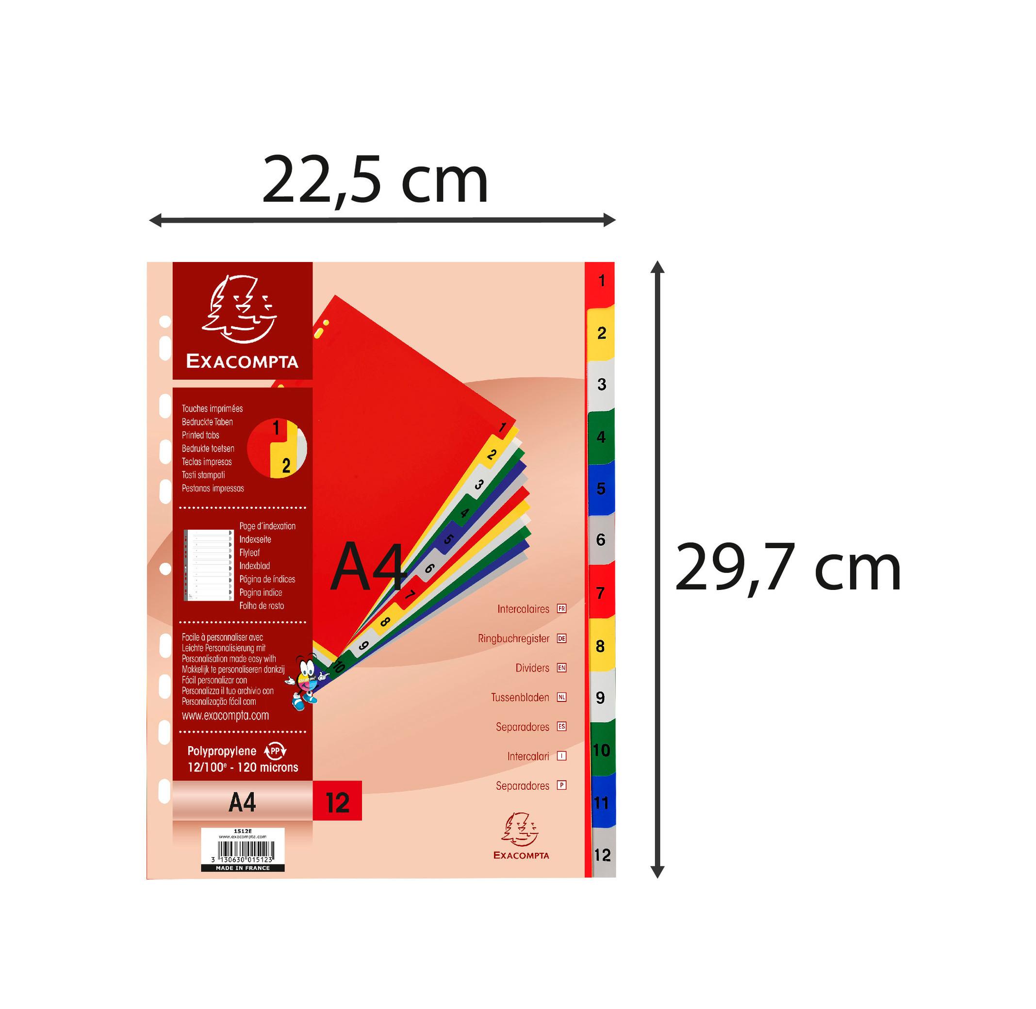 Exacompta Intercalaires imprimés numériques polypropylène 12/100e - 12 positions - A4 - x 20
