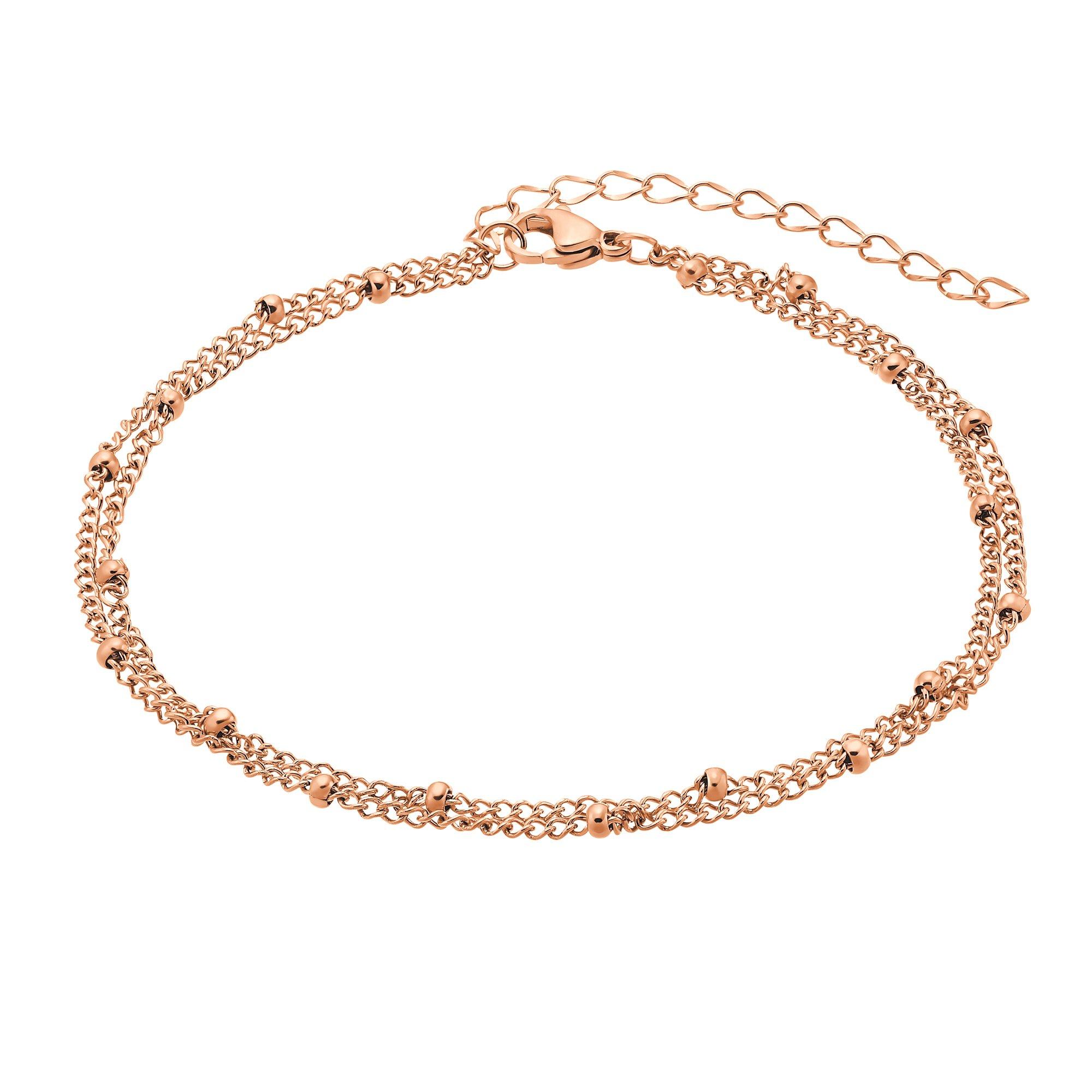 Que ce soit à la piscine en plein air, en ville ou lors d'un pique-nique dans un parc, ce bracelet de cheville te rendra tout simplement éblouissante ! La chaîne à double boucle avec ses petites boules souligne tes chevilles de manière décontractée et symbolise la légèreté et l'insouciance de l'été. Grâce à la petite chaîne de rallonge, tu peux facilement adapter le bijou à la taille de ta cheville.