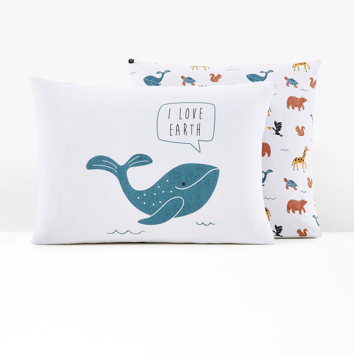 Cette taie d'oreiller présente un design charmant qui apporte une touche ludique à n'importe quelle pièce. Un côté met en scène une baleine amicale, tandis que le revers est orné d'un motif délicieux de divers animaux. La taie d'oreiller est fabriquée en coton biologique.