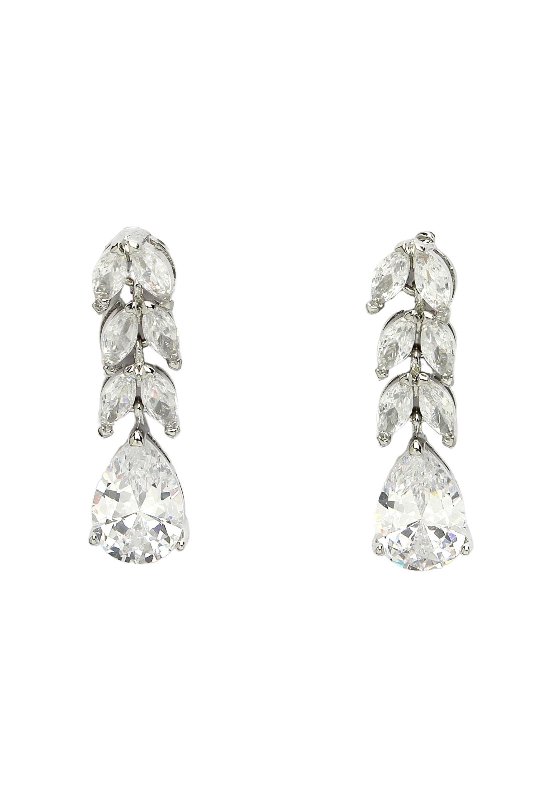 Laissez ces boucles d'oreilles pendantes en forme de feuille vous rappeler la beauté qui nous entoure dans la nature et imprégnez votre style d'une élégance intemporelle et organique. Le regard suit la courbe gracieuse des feuilles et se pose sur la silhouette lisse des gouttes de pluie, symbolisant le renouveau et la croissance. Elles deviendront assurément un bijou précieux de votre collection. Dimensions : 0,6 cm x 2,7 cm | Placage : Rhodium | Fermoir : Tige et ardillon