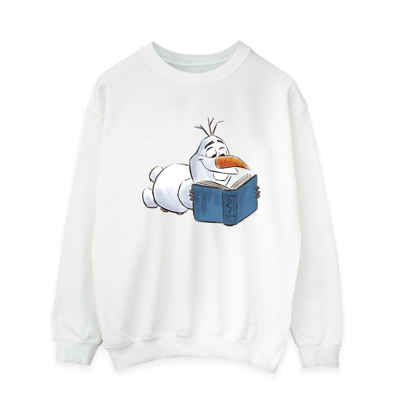 Ce sweatshirt présente un charmant graphique d'Olaf de Disney's Frozen, représenté lisant joyeusement un livre. Le design apporte une touche de fantaisie et de caractère à un classique de la garde-robe.