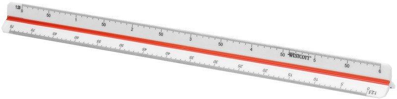 Reduktionsmassstab Der Reduktionsmassstab von WESTCOTT aus hochwertigem Kunststoff hilft Ihnen, Ihre Arbeit sauber und exakt zu erledigen. Dabei helfen die farbigen Hohlkehlen in rot und blau und die 6 verschiedenen Skalen. kompakt und präzise