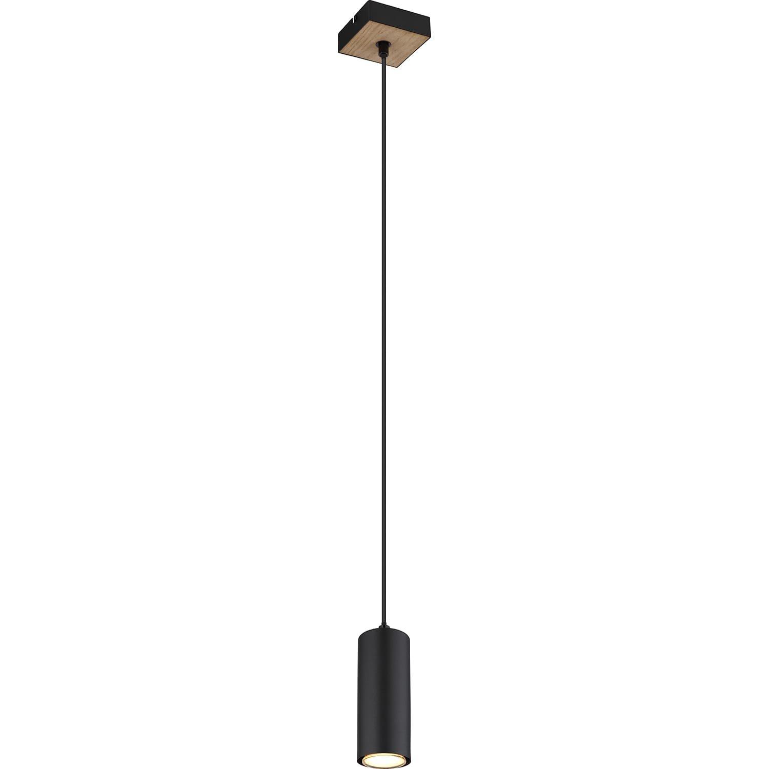 Cette suspension enchanteresse impressionne par son design. Un abat-jour cylindrique noir mat recouvre un raccord GU10 suspendu à un câble noir de 1,2 m d'un plafonnier carré effet bois. La douille GU10 permet de choisir les ampoules jusqu'à une puissance maximale de 35 watts.