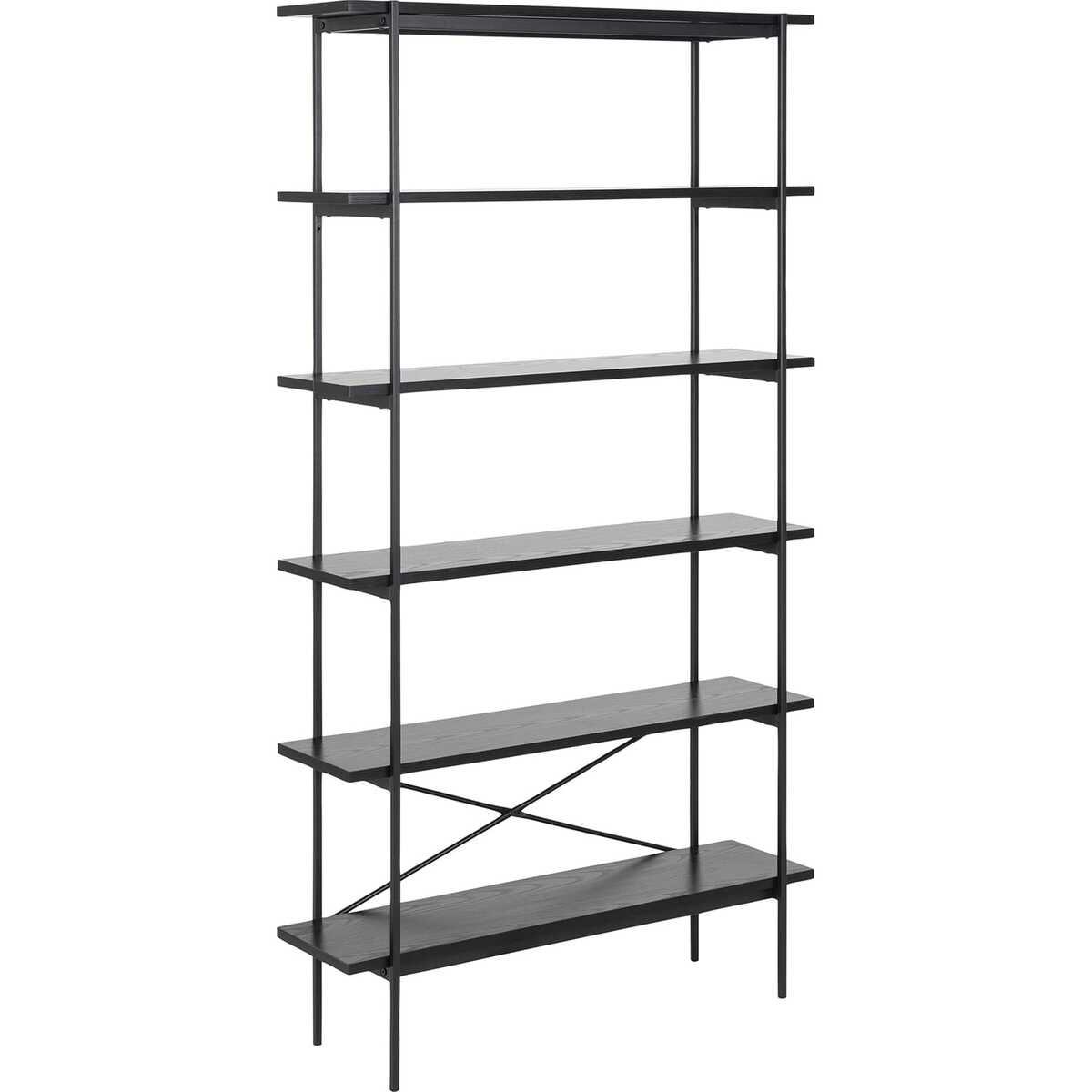 Étagère Angie Mélamine Frêne Noir Fond 5 pièces Structure métal époxy noir brut mat 94x27x172 cmCouleur châssis/pieds : noir mat