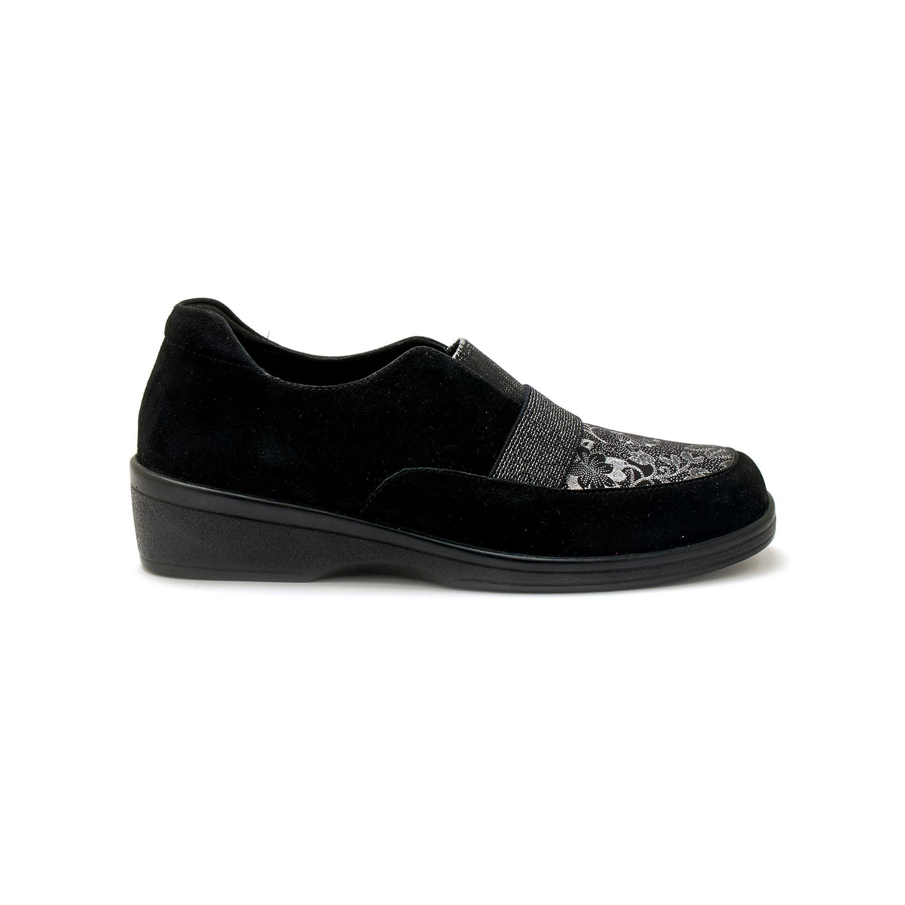 Ces mocassins extra larges Pediconfort sont conçus pour les pieds sensibles, difficiles à chausser et souffrant d'hallux valgus. L'alliance de cuir et de tissu extensible, leurs élastiques d'aisance et leur grand volume intérieur permettent un accueil en douceur du pied.