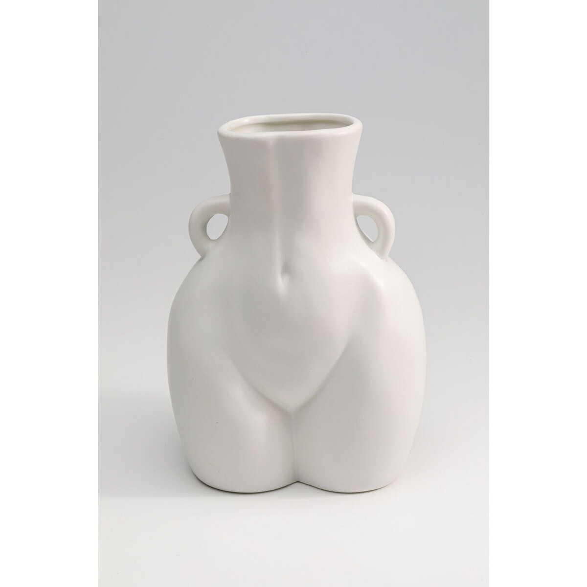 Vase en céramique, couleur blanche, 21.5 x 16 x 12 cm, céramique faïence émaillée, chaque pièce est unique, peinte à la main