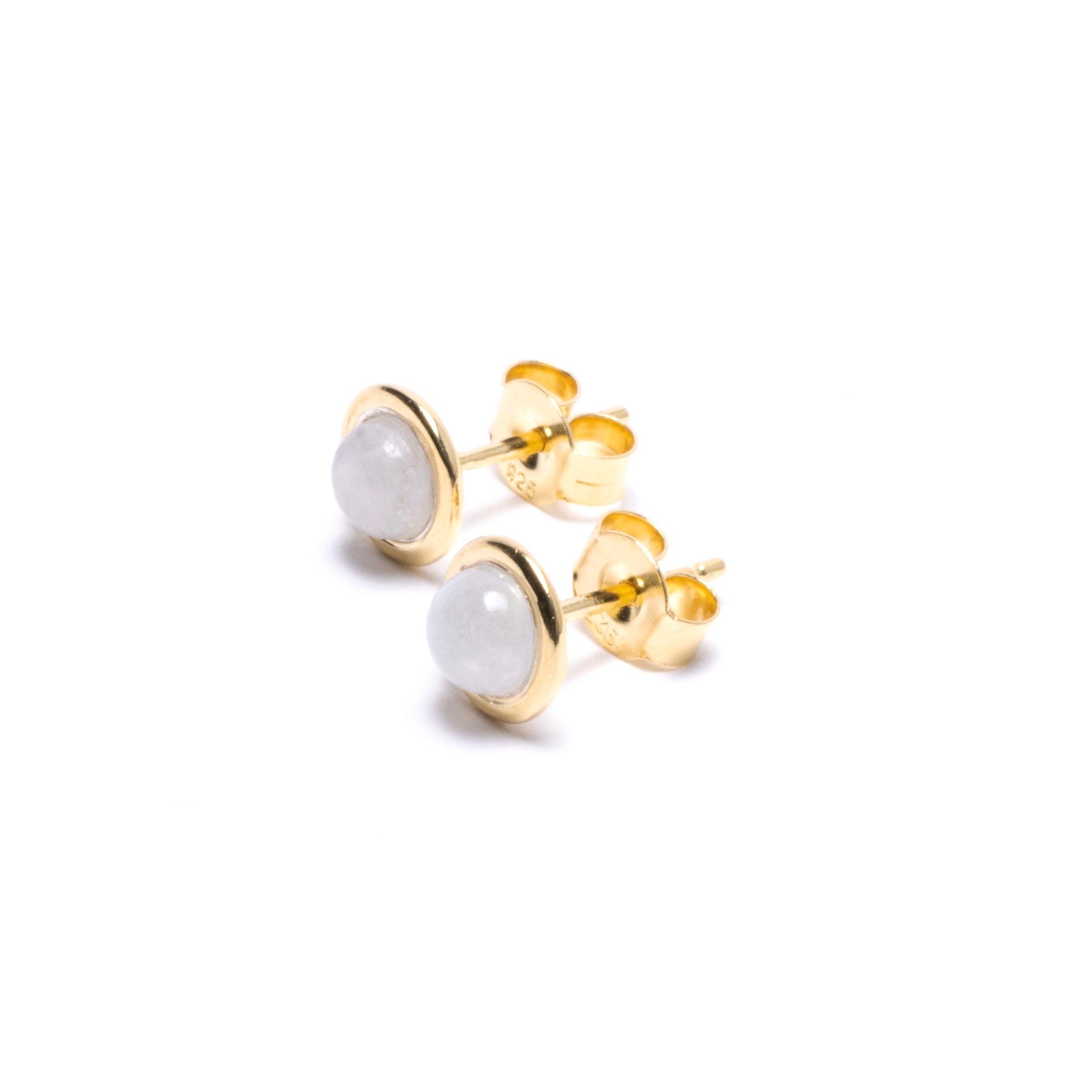 Balibay Boucles d'oreilles puces Aikas, ornées d'une pierre de lune, en argent plaqué or.