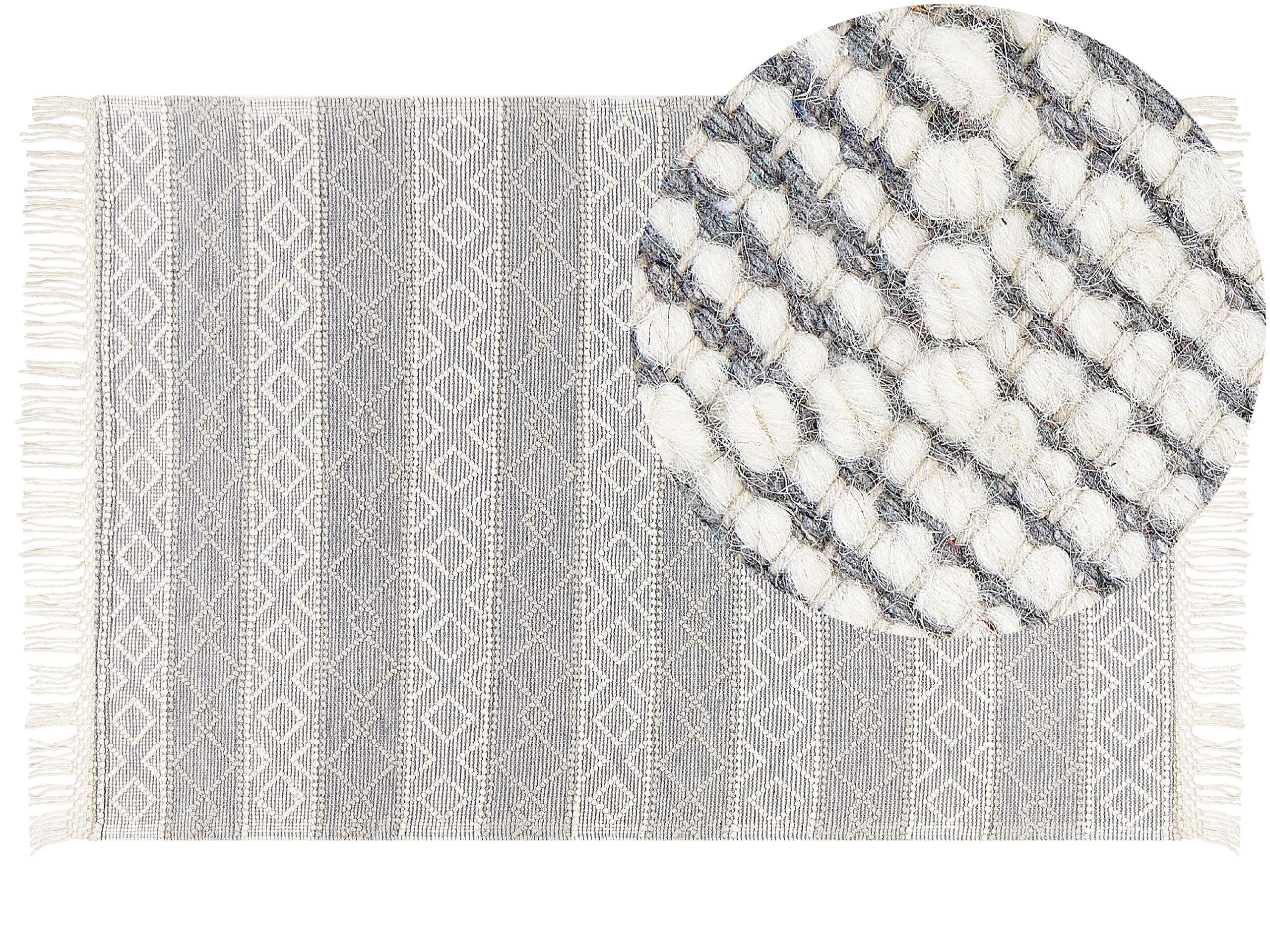 Tapis d'inspiration boho avec motif géométrique. Complétez le décor de votre salon ou de votre chambre à coucher avec ce tapis classique fait à la main. Il est fabriqué à partir d'un mélange durable de laine et de polyester, à la fois doux et agréable au toucher. Les deux extrémités du tapis sont ornées de glands décoratifs, tandis que l'avant de l'accessoire présente un motif géométrique qui attire l'attention.