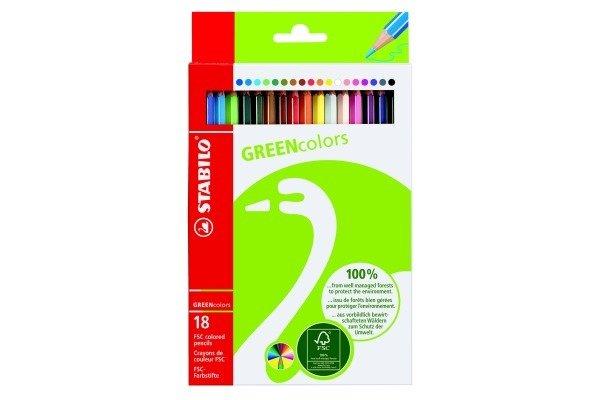 Mit den STABILO GREENCOLORS Farbstifte können Sie mit reinem Gewissen malen und schreiben! Die Stifte sind umweltfreundlich und mit hoher Qualität hergestellt. Dünner Buntstift zu 100% aus streng kontrolliertem, FSC®-zertifiziertem Holz. Intensive Farbabgabe. Minendurchmesser: 3 mm