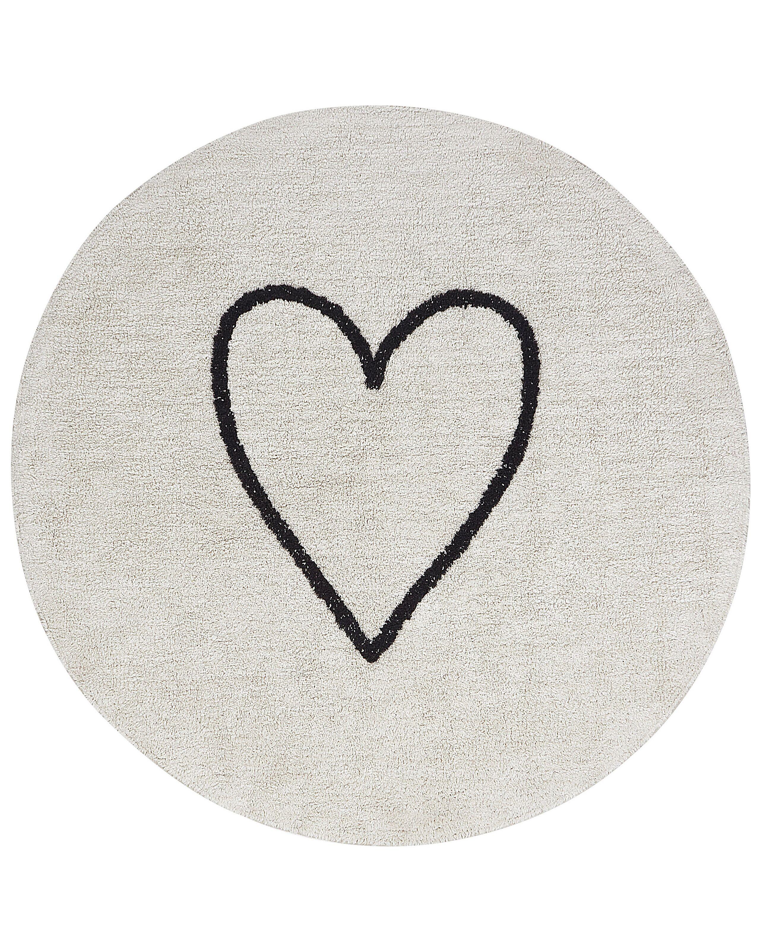 Tapis en coton pour enfants avec motif en forme de coeur. Habillez l'espace de votre enfant avec cet adorable tapis rond. Fabriqué en tissu de coton résistant et facile à entretenir de couleur beige, il présente un motif en forme de cœur qui attire l'attention dans une teinte noire contrastée. Cet accessoire sera la touche finale parfaite pour une chambre d'enfant, car il ajoutera de la chaleur à l'espace et deviendra un endroit idéal pour jouer ou même faire la sieste.
