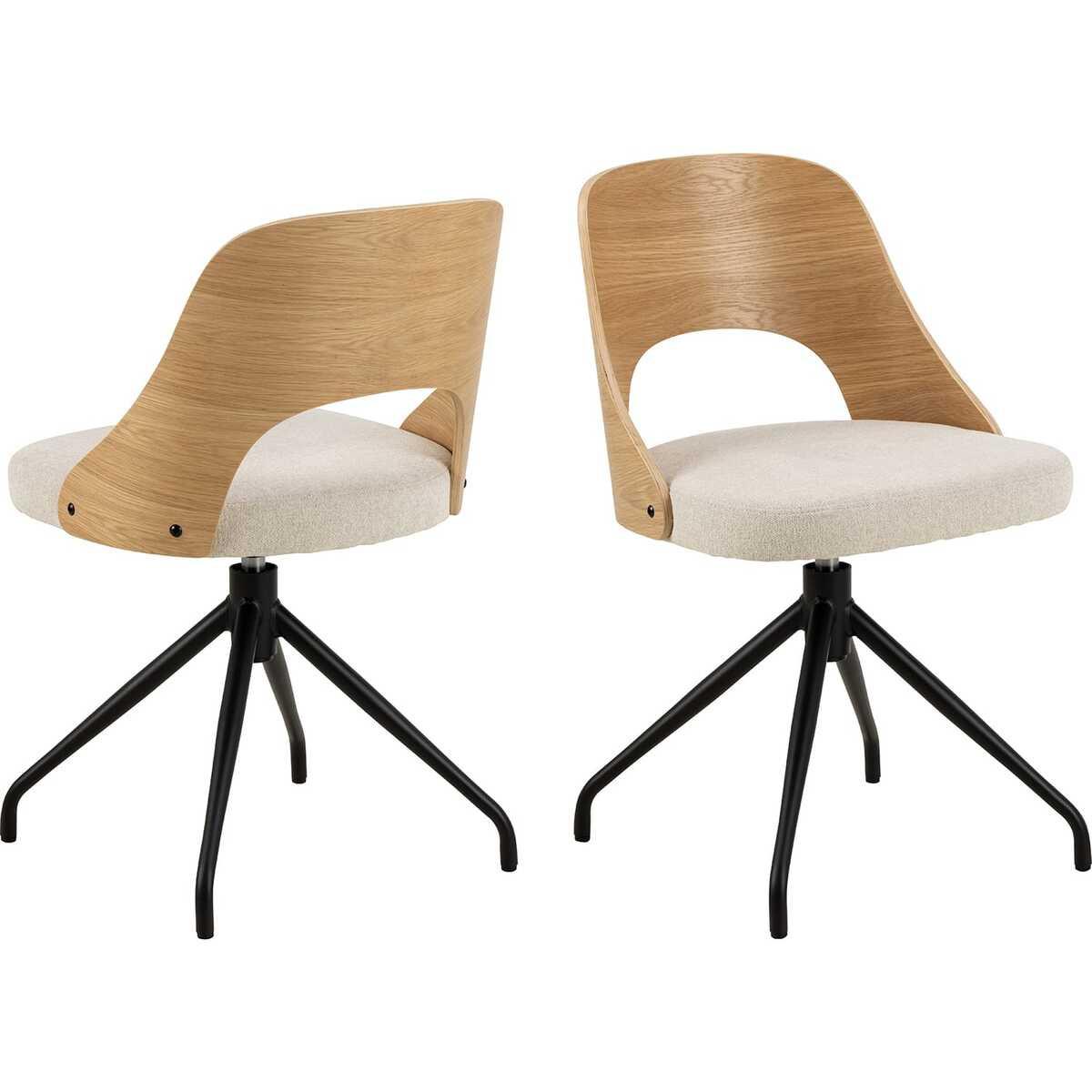 Dossier ouvert en placage de chêne laqué Assise confortable en tissu chenille beige Piétement 4 étoiles noir à revêtement par poudre grossier Fonction pivotante pratique et certifiée FSC