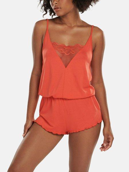 Le pyjama combishort Dione de Lisca est une pièce attrayante, confortable et audacieuse. Il présente une insertion de dentelle à l'avant et un dos visuellement profond en tulle couleur chair, terminé par un passepoil. Un insert élastique au niveau de la taille crée une très belle coupe qui met en valeur la silhouette. Des fentes supplémentaires sur les côtés du short ajoutent une touche sensuelle. Les fines bretelles sont réglables pour un ajustement parfait.