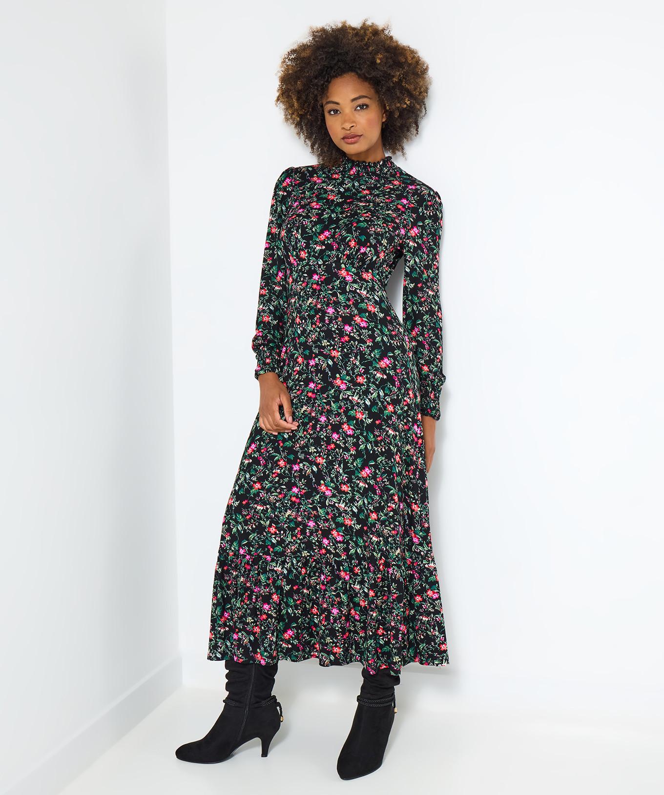 Joe Browns Robe Midi en Jersey Col Montant Volants Imprimé Floral Hivernal