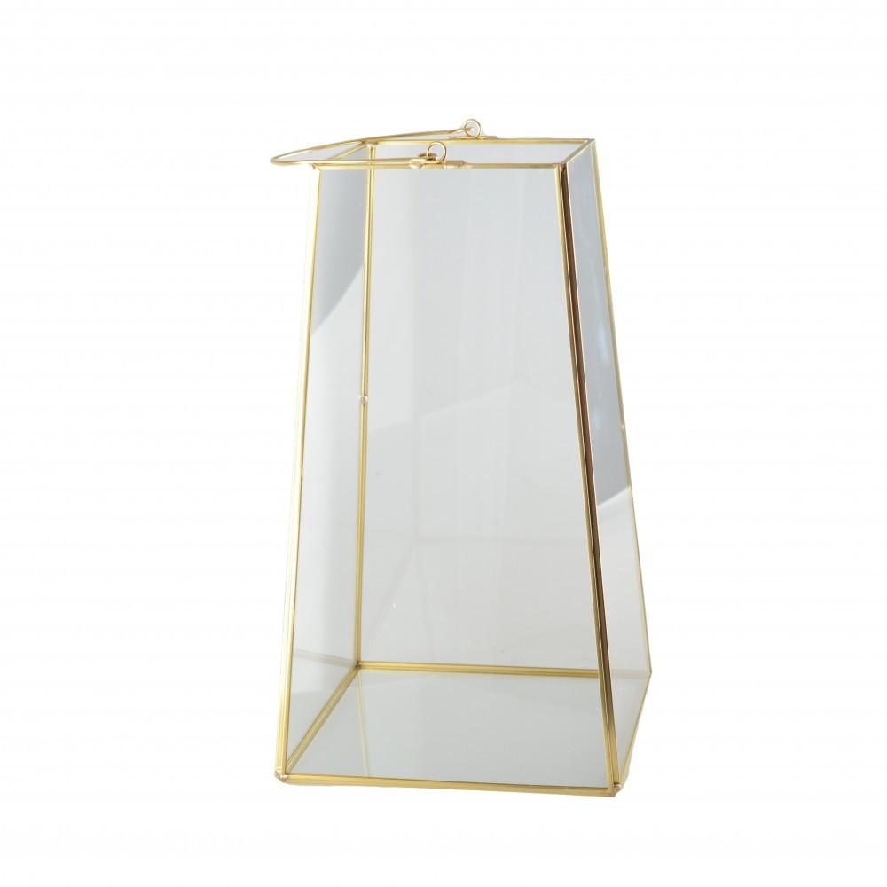 169601 - Lanterne en verre avec anse et bords dorés 17x17x30cm - AULICA