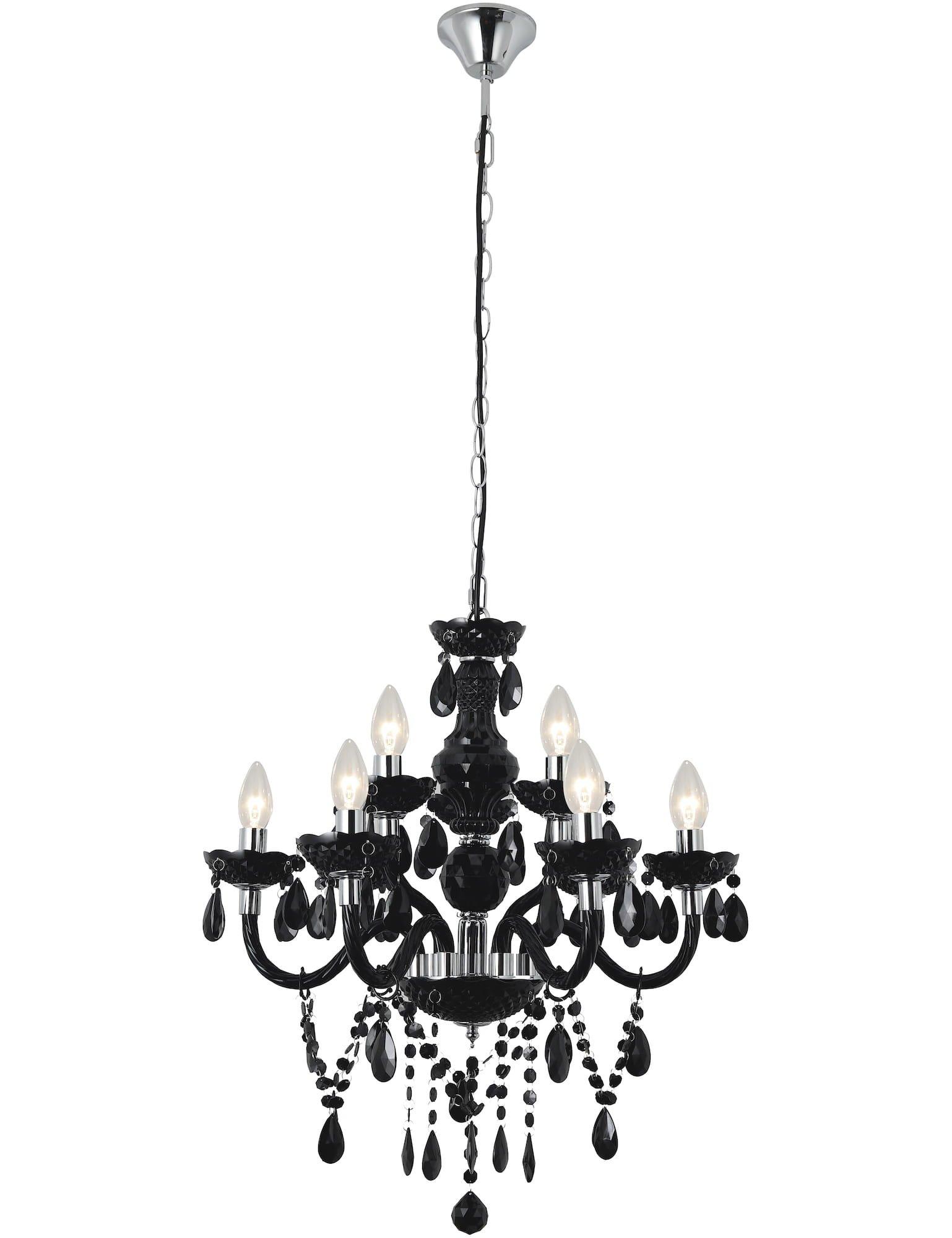Rideau en acrylique noir avec surface polie, suspension en métal, diamètre de l'abat-jour 53 cm environ, 9x E14, 60 W, ampoules non incluses