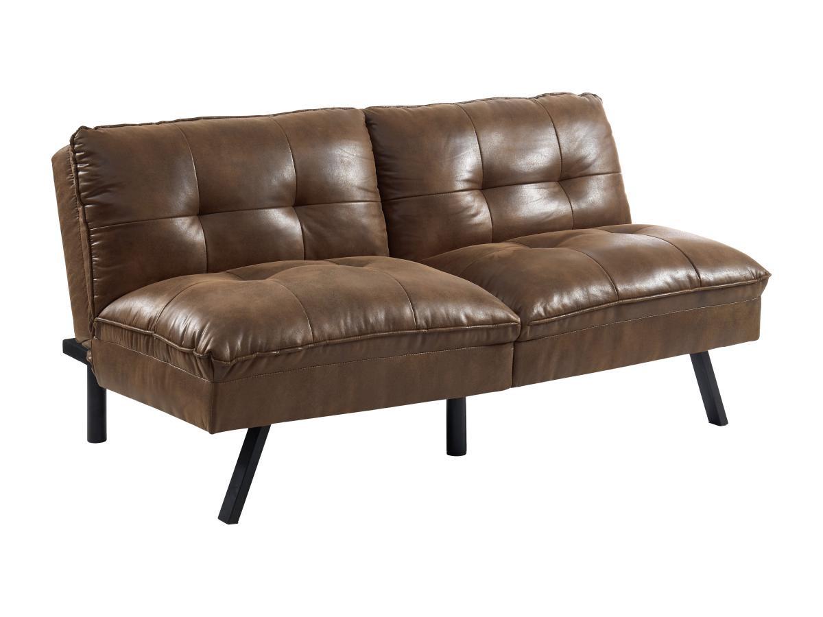 Vente-unique, Canapé convertible clic-clac 3 places en microfibre vieillie marron PEGULA II