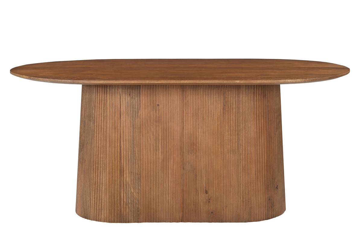 Fabriquée en bois de manguier robuste et massif Veinure naturelle du bois, chaque pièce est unique Forme ovale favorisant la communication et la communauté Dimensions généreuses : 180x100 cm, hauteur : 76 cm Pied de socle ovale avec design à lamelles pour la stabilité Facile à entretenir et durable pour une utilisation à long terme Souplesse d'utilisation dans différents styles d'aménagement