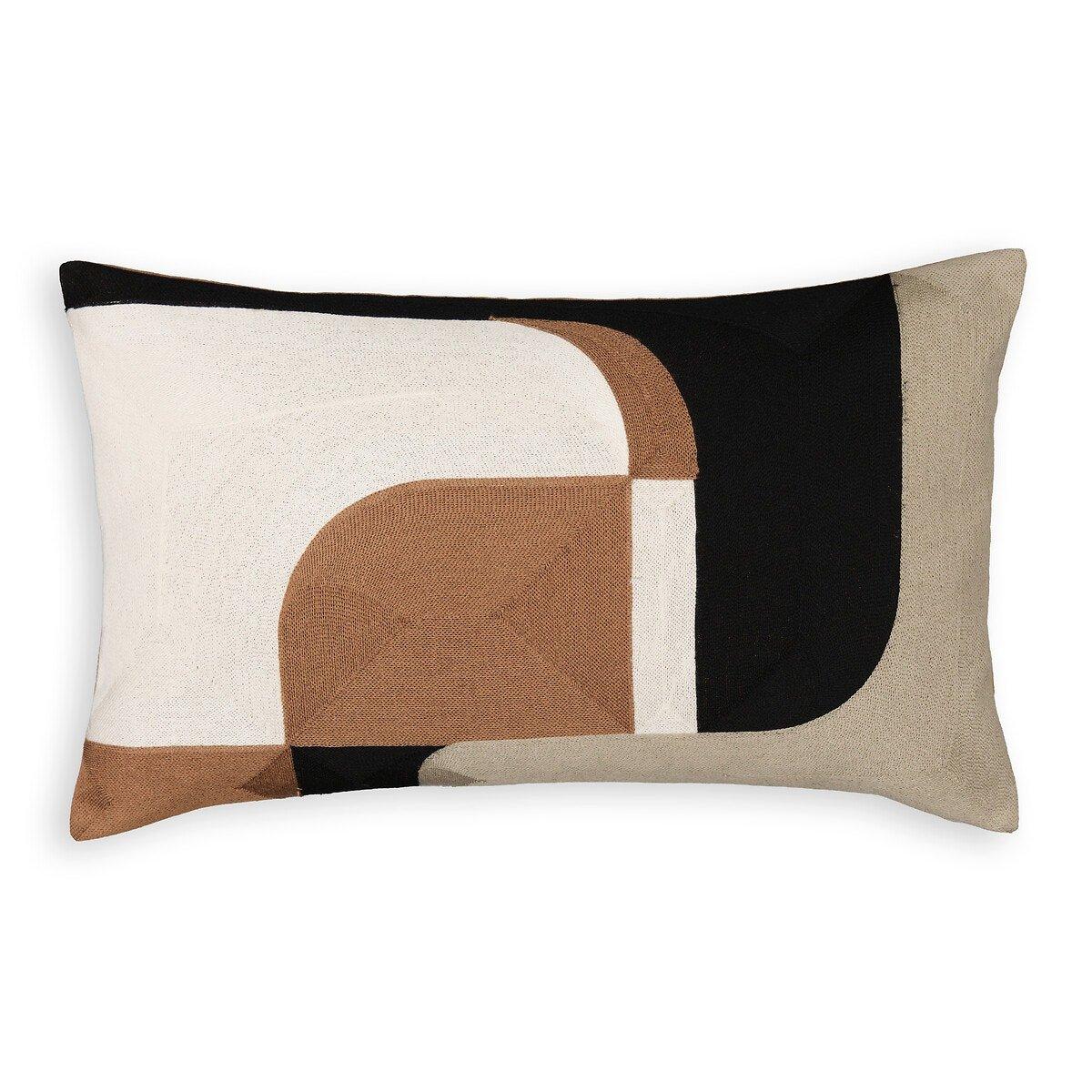 Esprit graphique, couleurs chaudes, broderies abstraites La housse de coussin Egia se mixe facilement aux coussins unis et apporte une touche d'élégance et doriginalité au salon. Une création signée La Redoute Intérieurs.