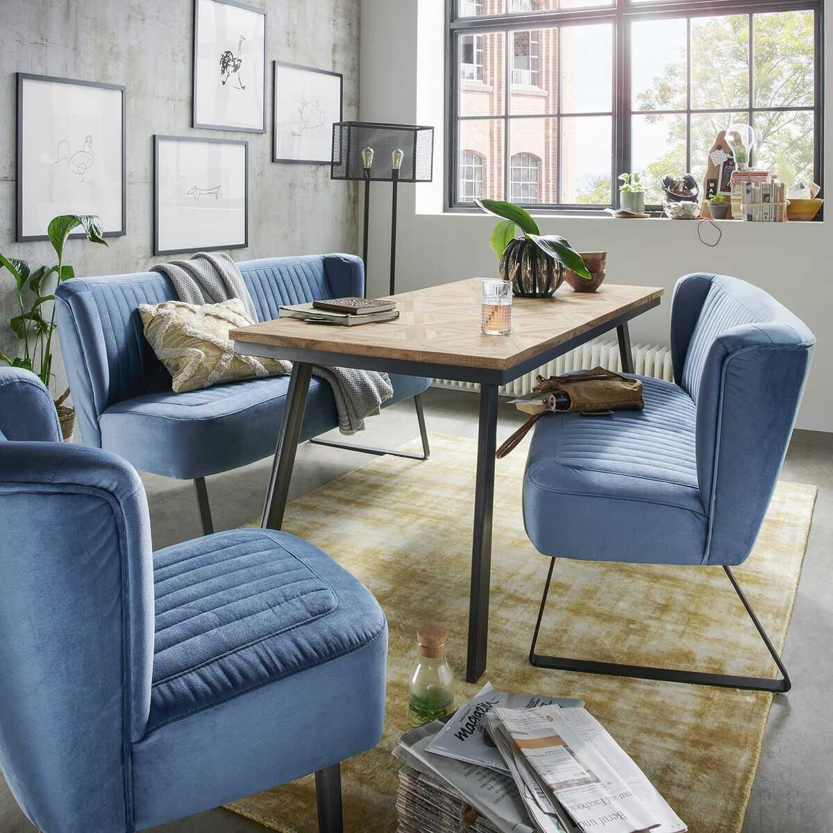 mutoni Table de salle à manger Mosaïque Teck Mosaïque Blanc Métal Noir 160x80