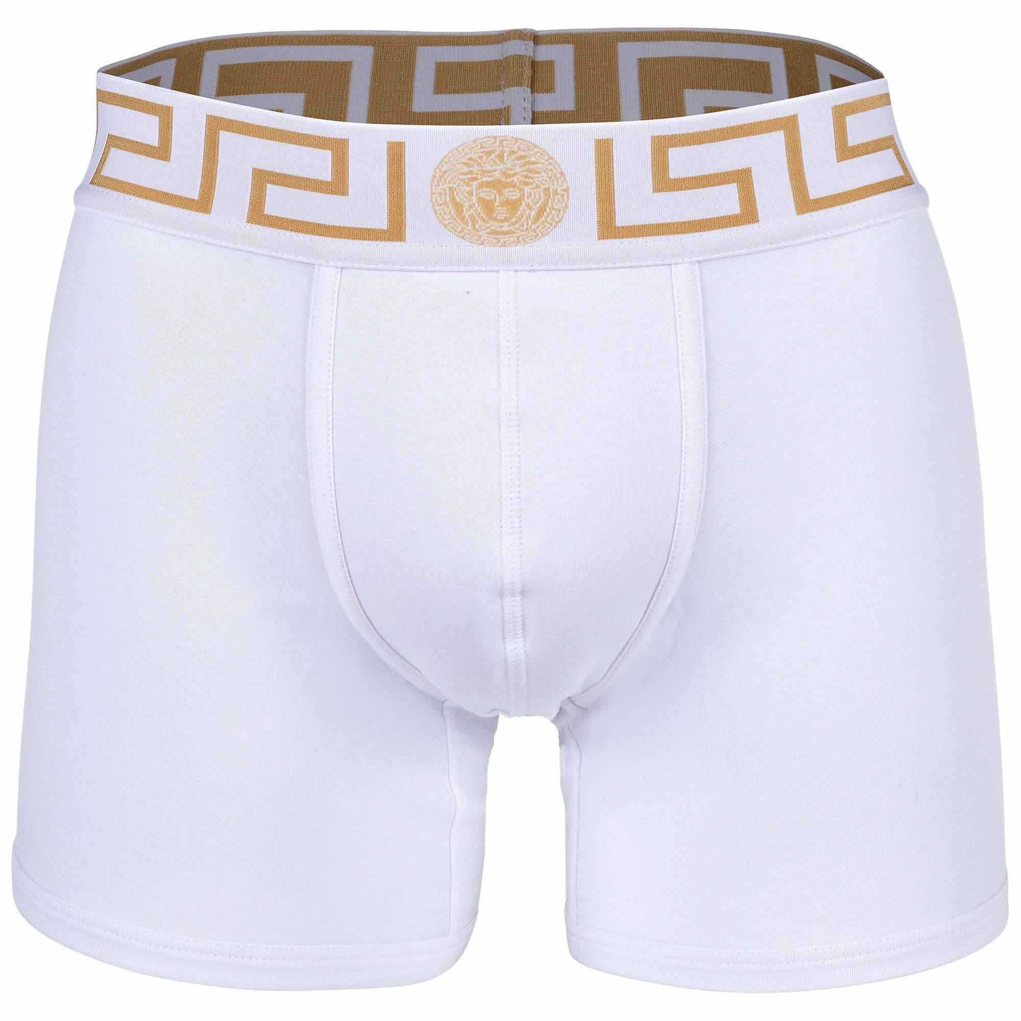 Ce caleçon offre une coupe confortable et un design élégant. La ceinture élastique présente un motif Greca distinctif et un motif Méduse, ajoutant une touche de sophistication aux essentiels quotidiens.