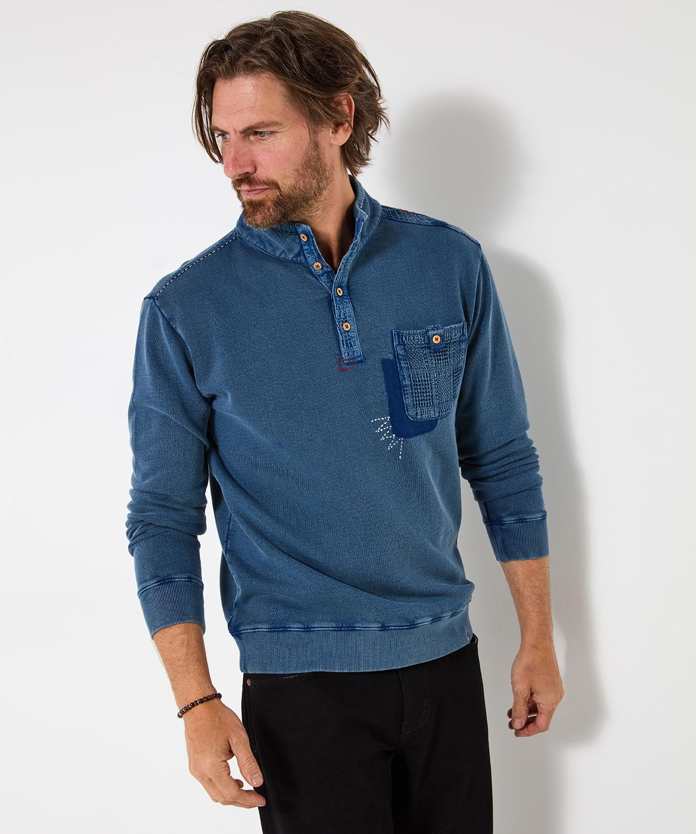 Ce pull personnalisé à col cheminée offre un style distinctif avec ses détails uniques. Le design présente une patte de boutonnage au niveau du cou et une poche plaquée décorative sur la poitrine, ajoutant du caractère au vêtement. Des coutures subtiles et des éléments brodés rehaussent encore son attrait individualisé.