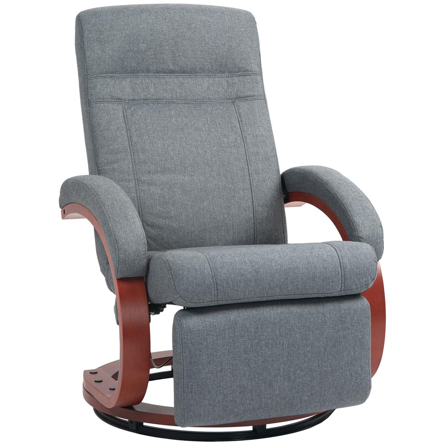 Northio, Fauteuil de relaxation Fauteuil TV avec fonction inclinable, accoudoir en bois, fauteuil TV inclinable et pivotant avec dossier réglable, fauteuil inclinable, tissu, gris
