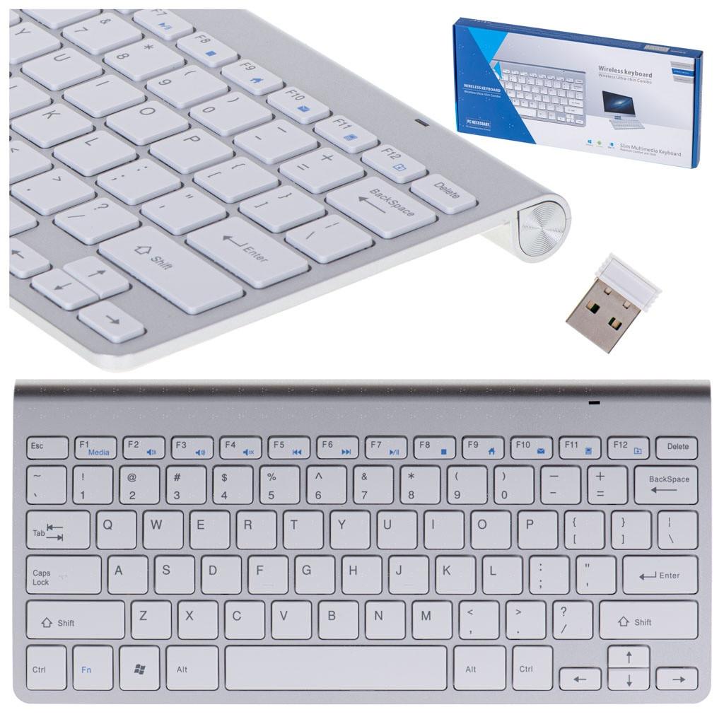 Le clavier sans fil pratique. La forme mince et la taille compacte garantiront une utilisation peu encombrante et pratique. Alimentation : 2 piles AAA. Connectivité : sans fil 2,4 GHz. Interface : USB. Portée : jusqu'à 10 m. Couleur : argent. Dimensions : 28,5 x 13,3 x 1,9 cm.