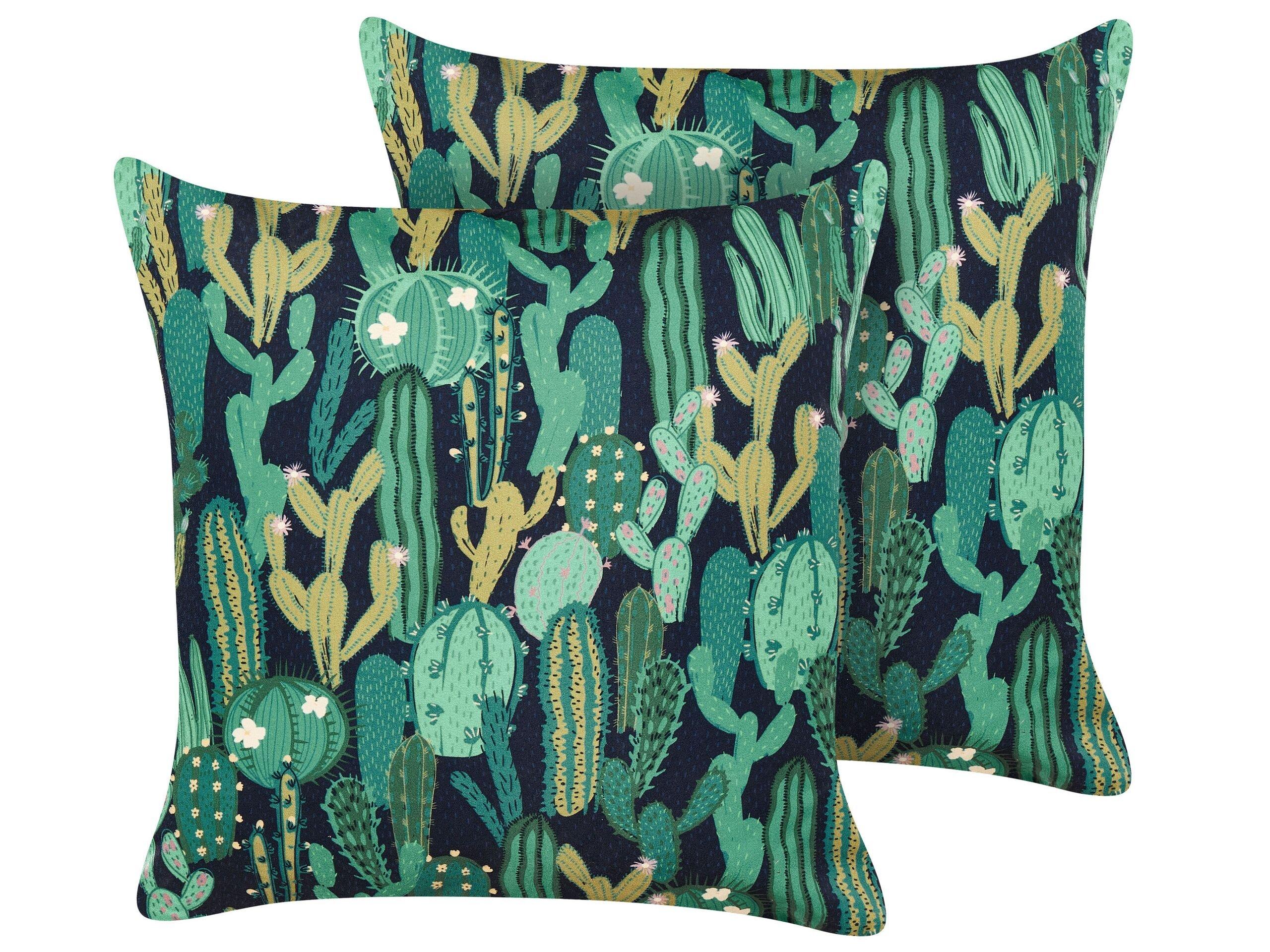 Set de 2 coussins d'extérieur. Adoptez le chic inspiré du désert dans votre décor avec ces deux coussins ornés d'un motif de cactus très tendance. Parfaits pour l'intérieur et l'extérieur, ils ont été fabriqués et remplis de polyester résistant pour un confort accru. L'entretien est facile grâce aux housses amovibles et lavables à la main.